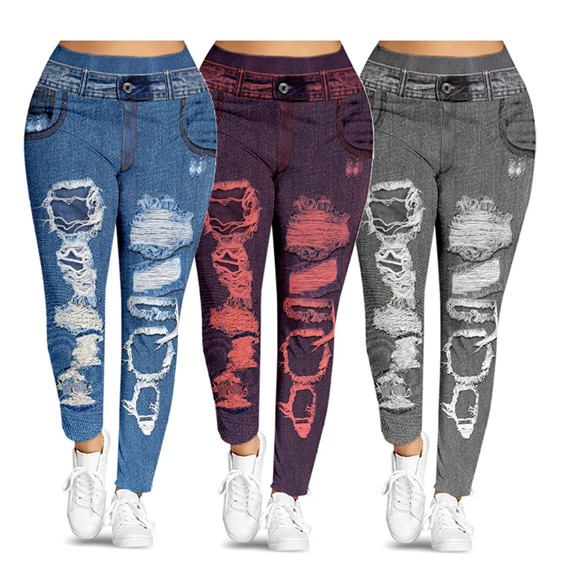 Buy Wipalo Women Plus Size S-5XL Imitation Denim 3D Print Leggings High Waist Sexy Skinny Leggings Ladies Casual Pants Leggins 2019