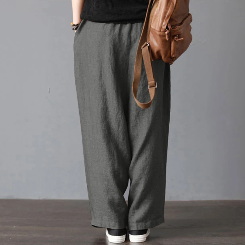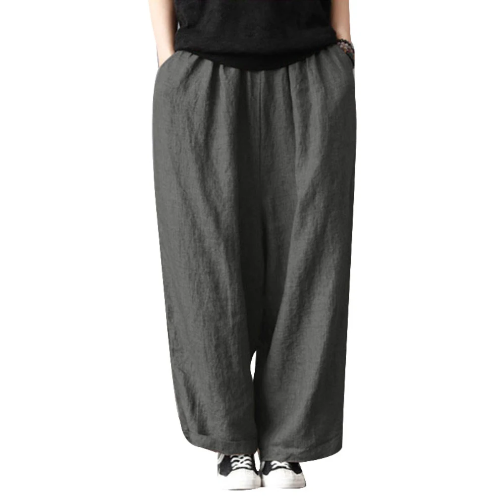 Best Offer Plus Size Fashion Women Casual Solid Color Cotton Linen High Elastic Waist Wide Leg Long Pants Female Casual Loose Trousers