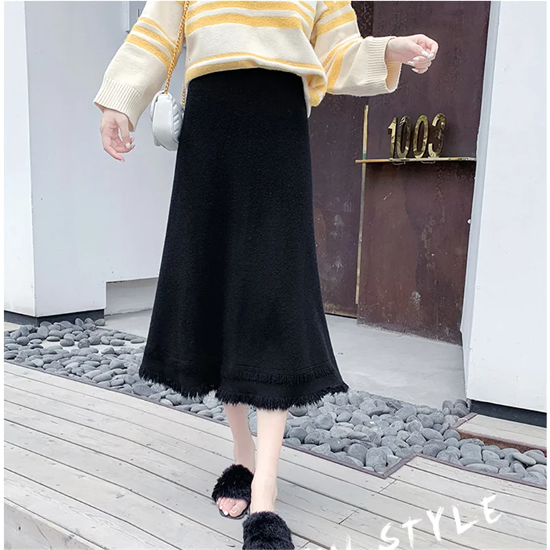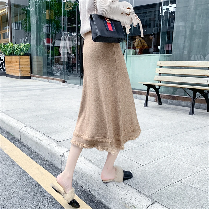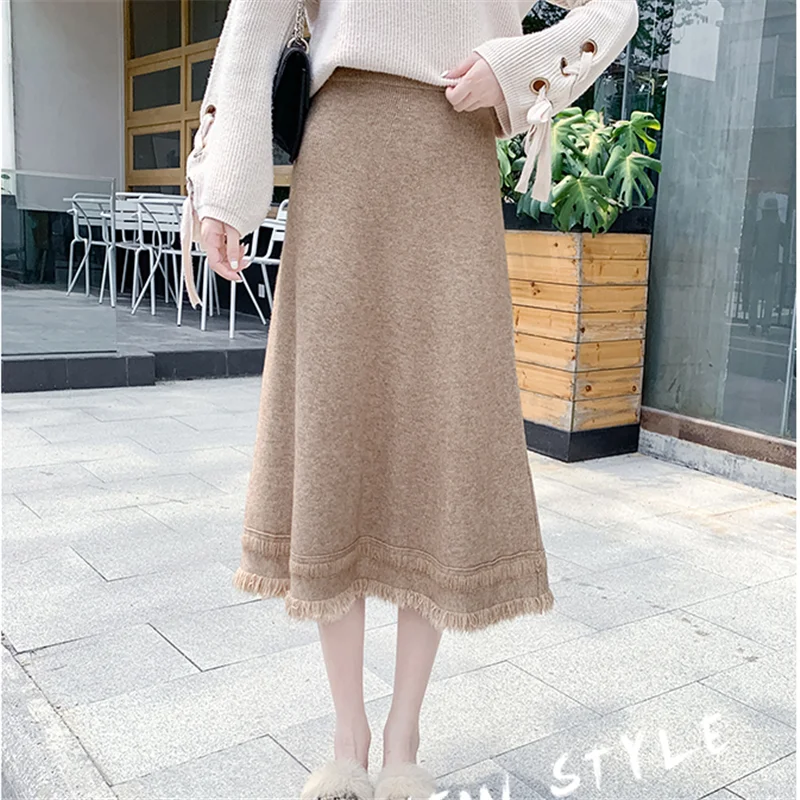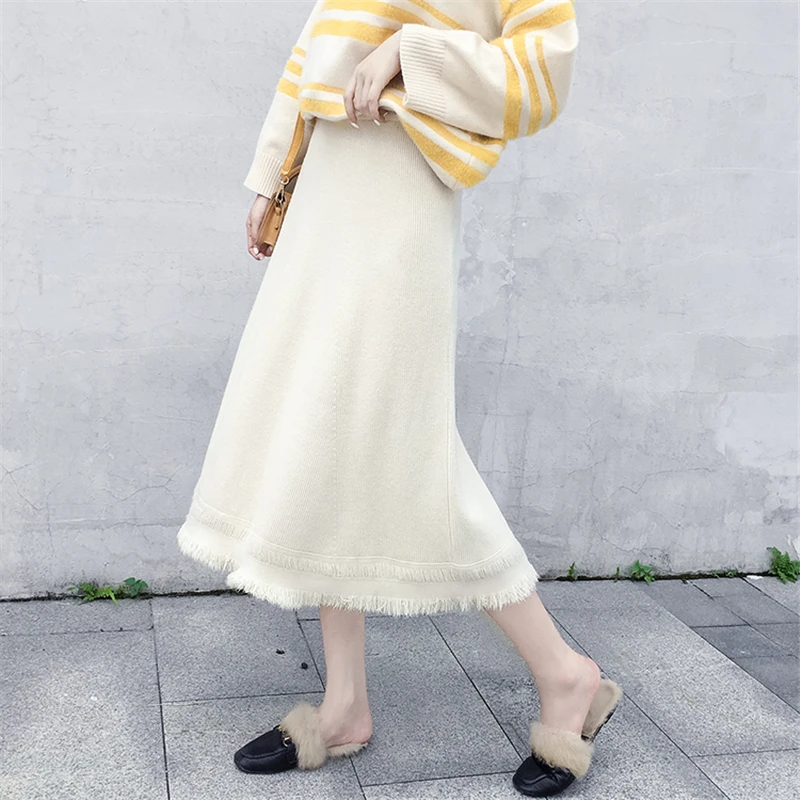Best Offer Spring Tassel Skirt 2020 New Knit Hip Skirt High Waist Mid-length A-line Skirt Women Pleated Skirt Knitted Skirt Women