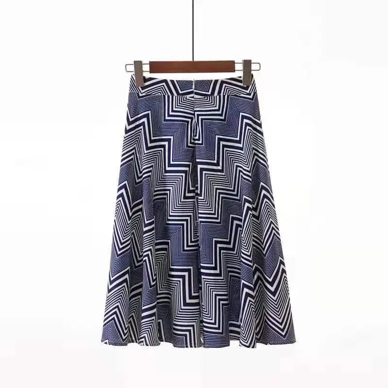 Buy High Waist Skirts Europe Fashion Chic Print Women Skirt Falda Mujer Summer Large Size Ankle-Length Elastic Waist Jupe Femme