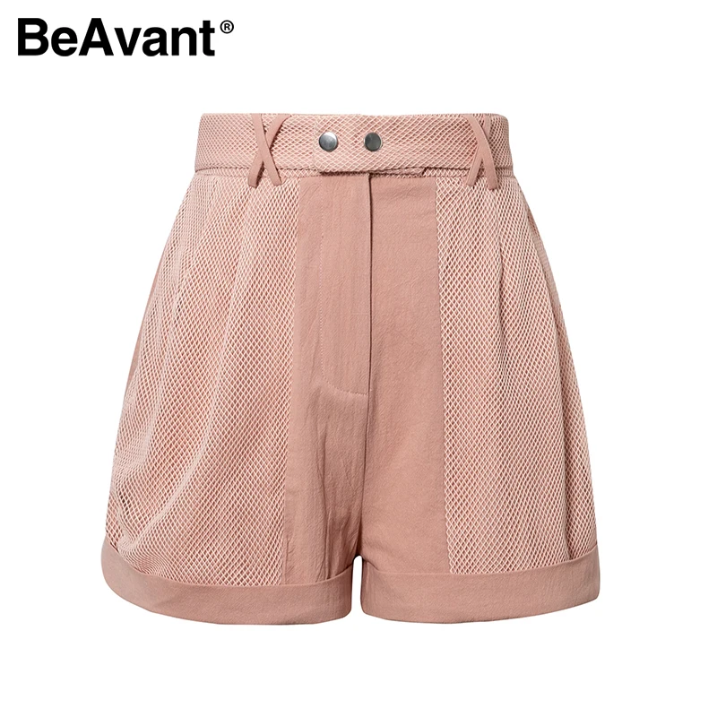 Get this BeAvant High Fashion Pink Women Shorts Summer Hollow Out Sexy Short 2020 Female High Waist Casual Shorts Buttom Cotton Zipper with limited time discount by pressing the button below