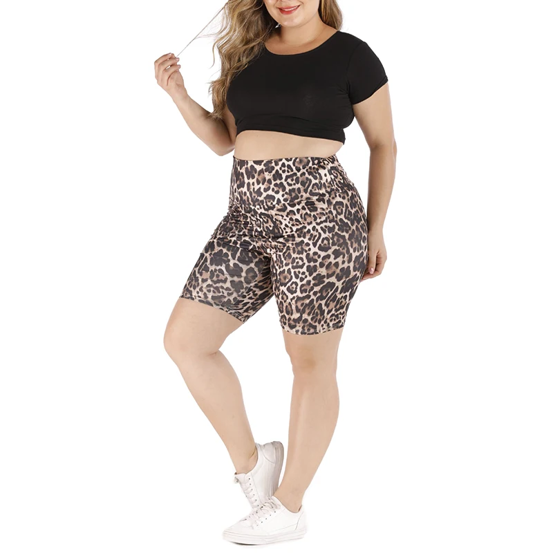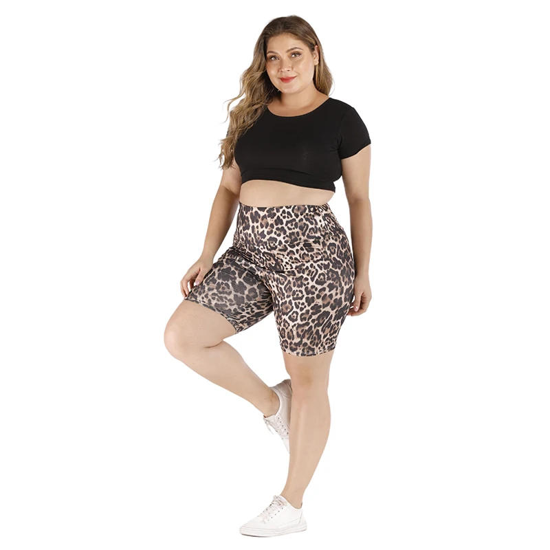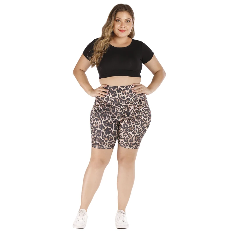 New Large Size Sports Shorts Women Summer Leopard Pattern Shorts Casual Lady High-elastic Skinny Shorts Daily Correndo Short Pants