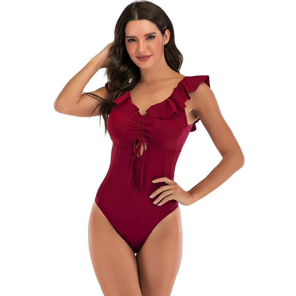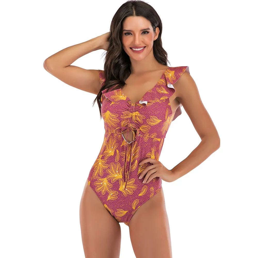 Sale 2020 Sexy Ruffle One Piece Swimsuit Women Swimwear Push Up Monokini Bodysuit Print Swim Suit Backless Bathing Suit Beach Wear XL