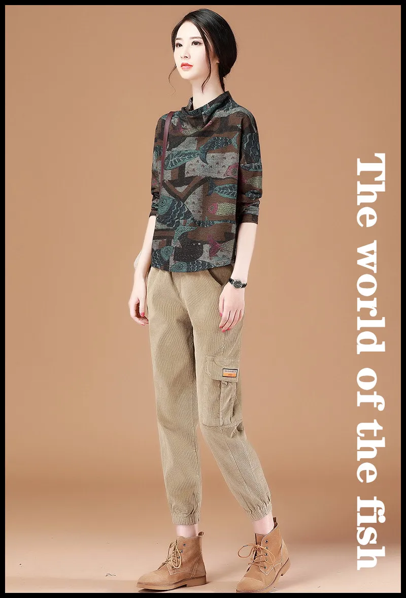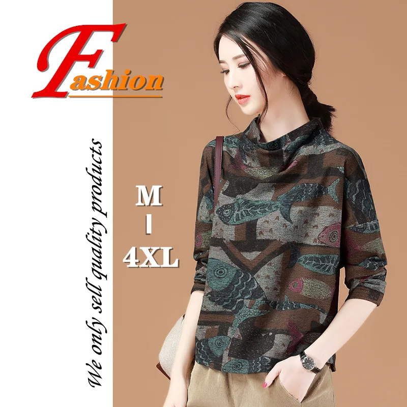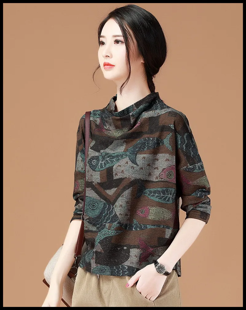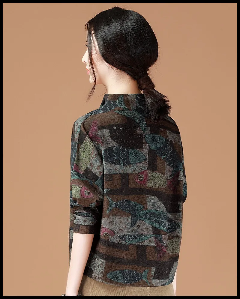 Best Offer High-grade new women's retro pattern design casual all-match comfortable soft breathable fashion no-iron noble fish pullover