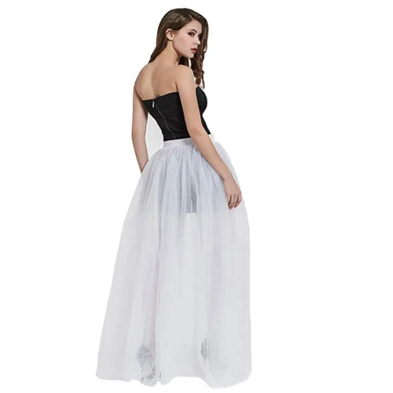 Get this 2019 new hot sexy high elastic mesh petticoat irregular skirt hollow perspective women's fashion solid color tulle long skirt with limited time discount by pressing the button below