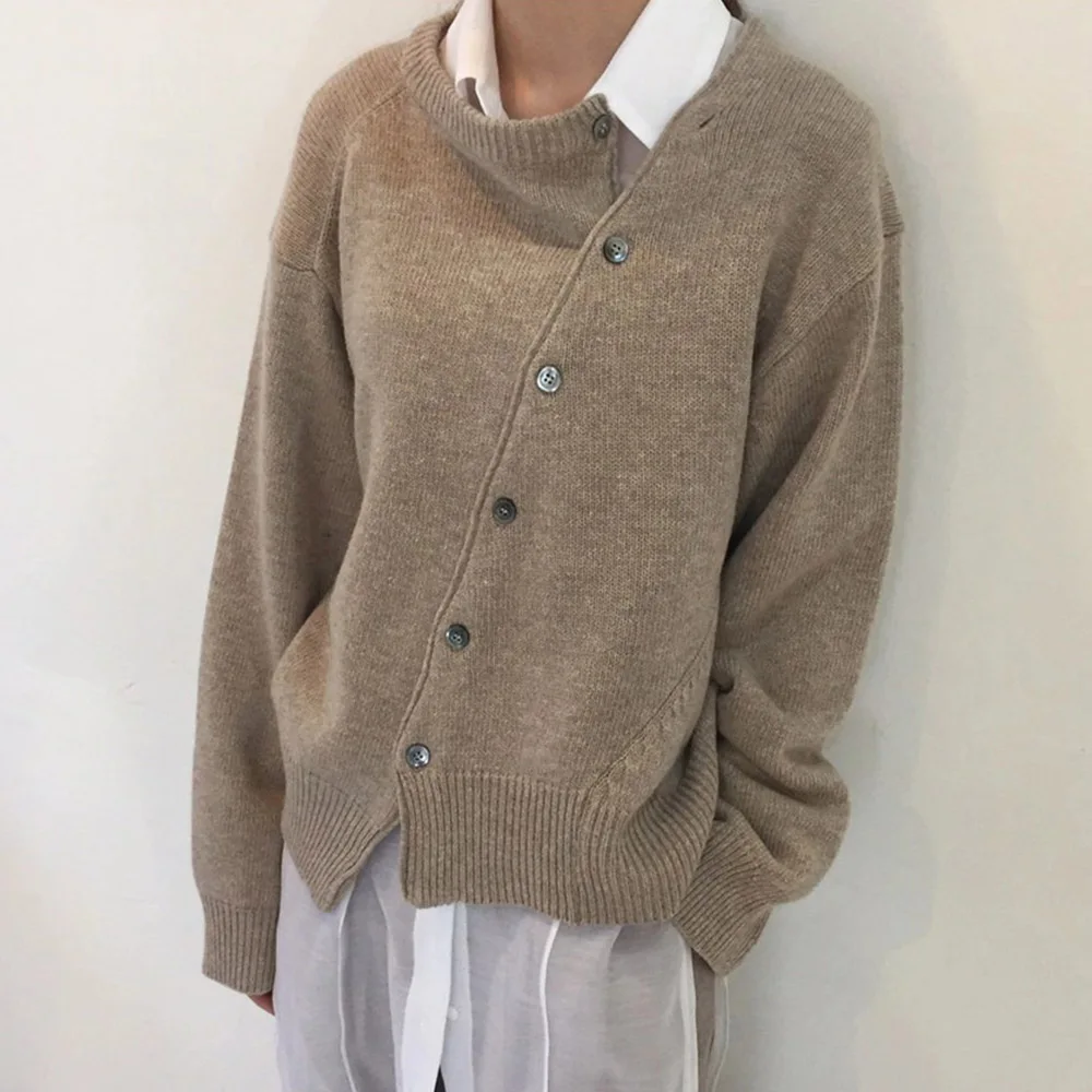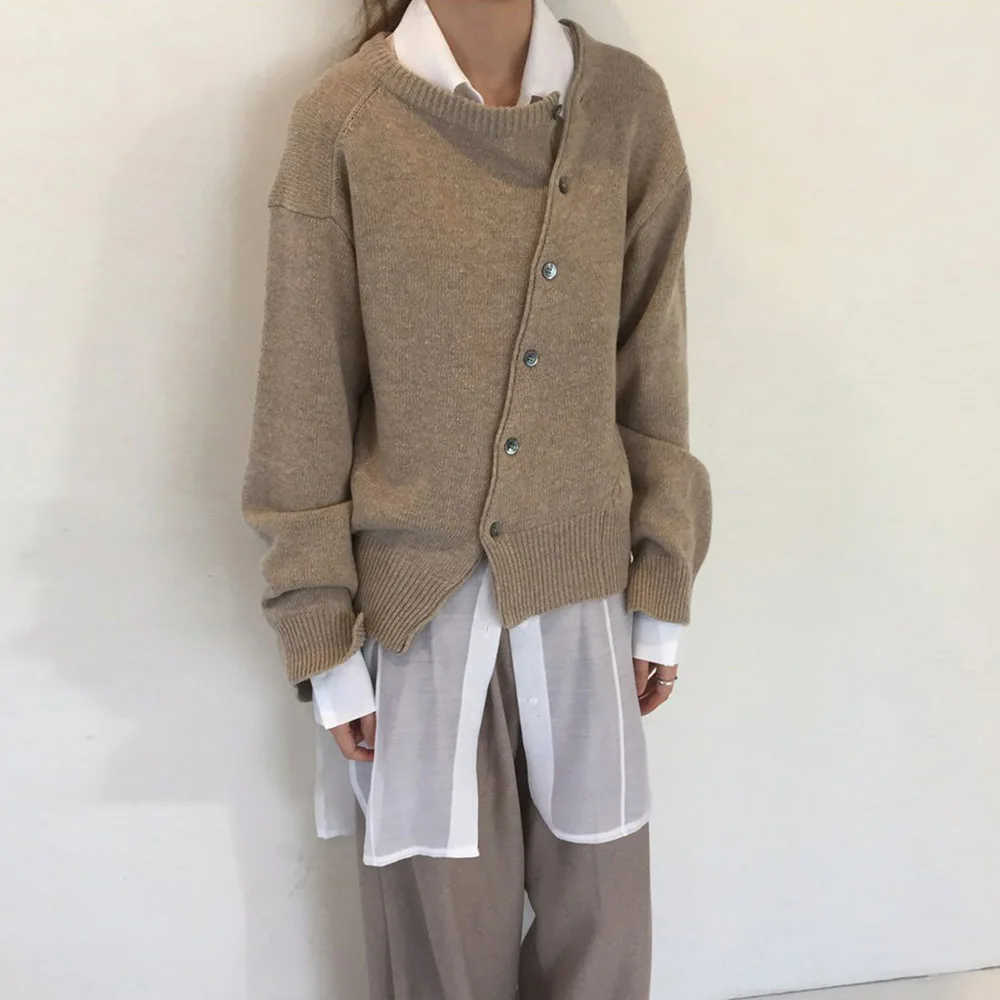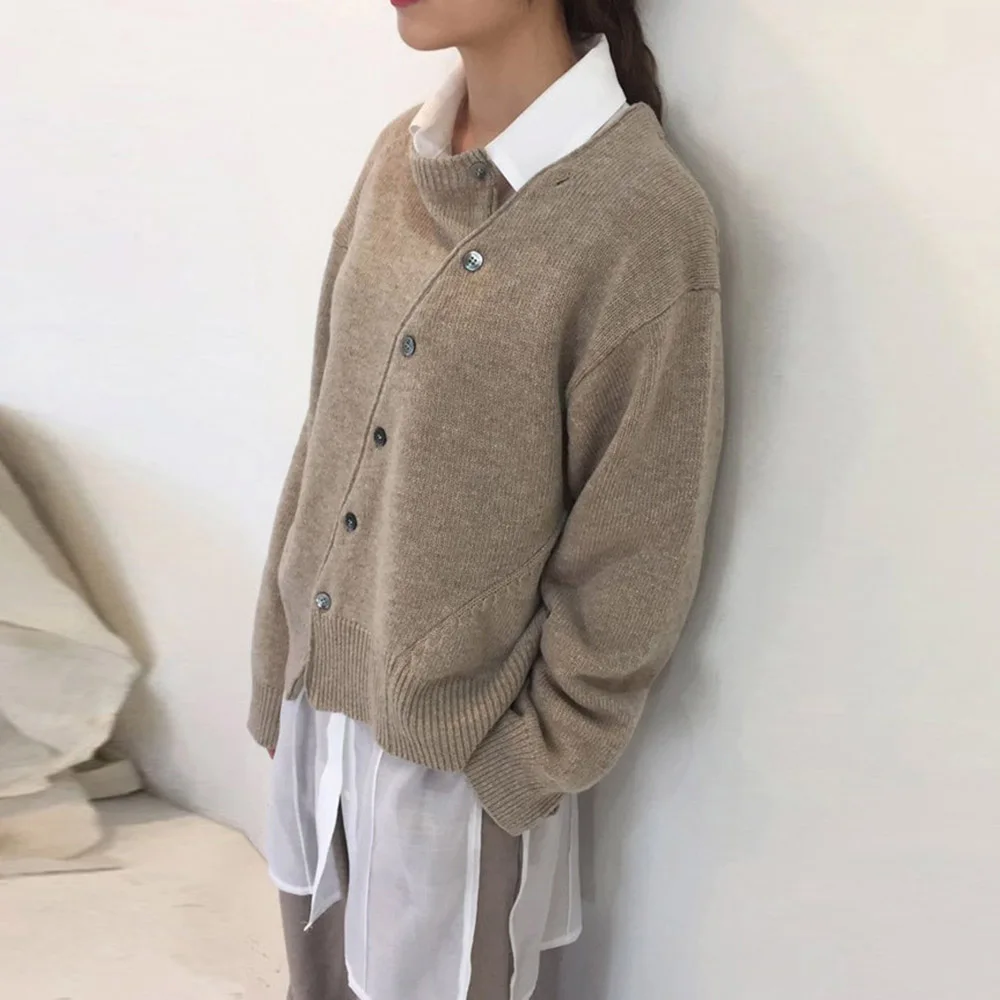 Promo Knitted Sweater Women Autumn Solid Khaki Loose Causal Knit Wear Korean Fashion Pullovers Asymmetric Spring Jumpers Preppy Style