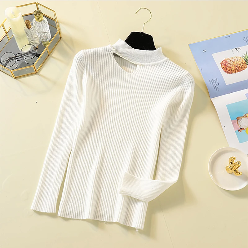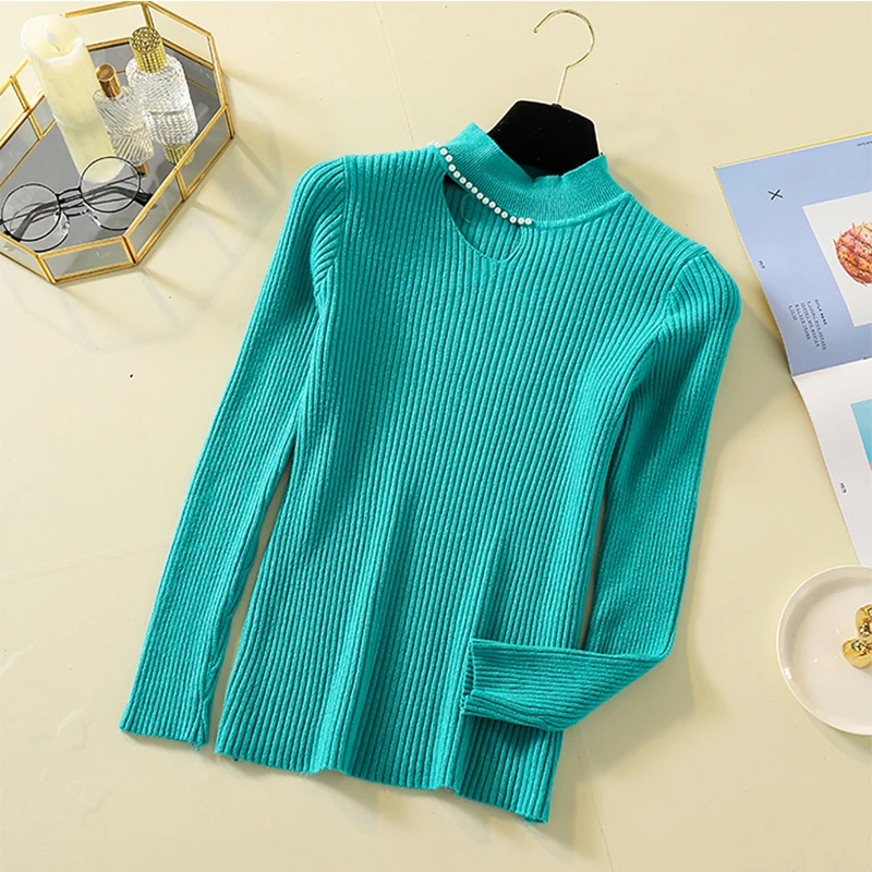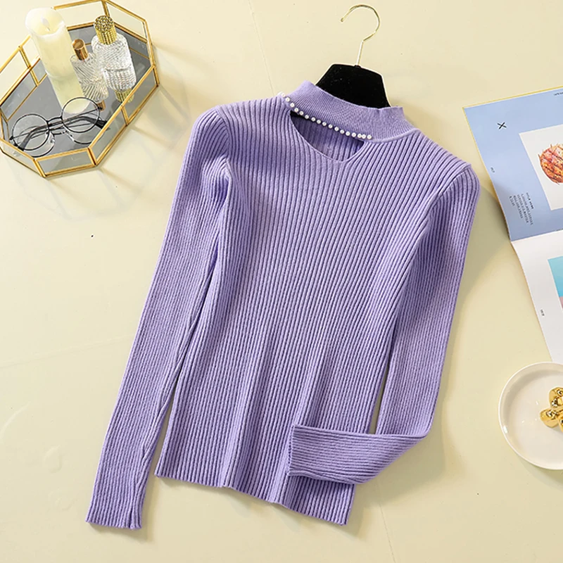New Lady Full sleeve Knit Autumn Purple Sweaters Basic Beading Women Casual Pullovers Turtleneck Sexy Hollow out Tops jumpers 2019